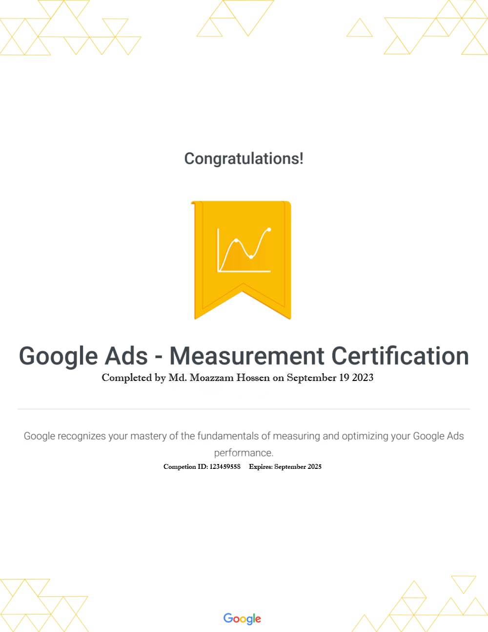 I am Moazzam Hossen, a digital marketing expert with proficiency in Google Ads, Facebook Ads, Google Tag Manager, and Google Analytics. With a passion for data-driven strategies, I help businesses optimize their online presence, drive conversions, and make informed decisions. Let’s elevate your digital marketing journey together.
